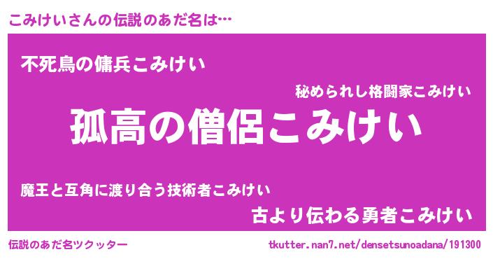 | ヒーロー風カッコイイあだ名 | 『黄金騎士コミ』『スーパーコミケイ』 |