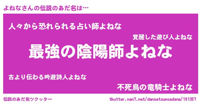 | ファンタジー風あだ名 | 『エターナルヨネナー』『クインヨット』 |