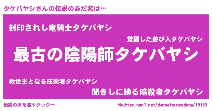 | ポケモン風あだ名 | 『タケゴンZ』『タケセウス』 |