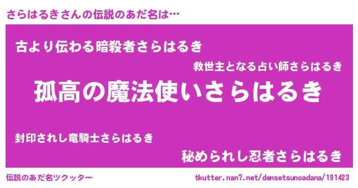 | 胡散臭い通販商品みたいなあだ名 | 『信頼と実績のサプリメント…その名も「さらはるき」』 |