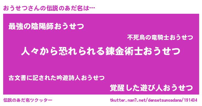| ヒーロー風カッコイイあだ名 | 『正義の使者おうせつ』『仮面オウダー』 |