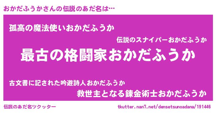 | 意味不明あだ名 | 『おかだふうかフォーエバー』 |