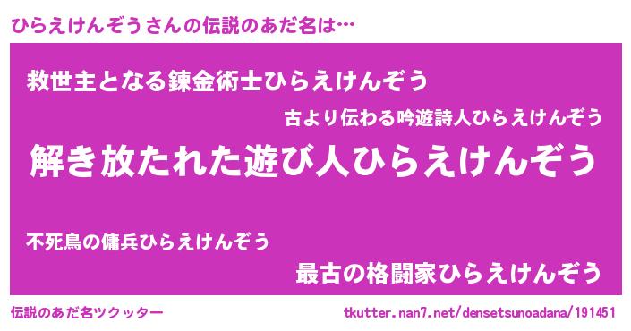 | 意味不明あだ名 | 『自称ひらえけんぞう』 |
