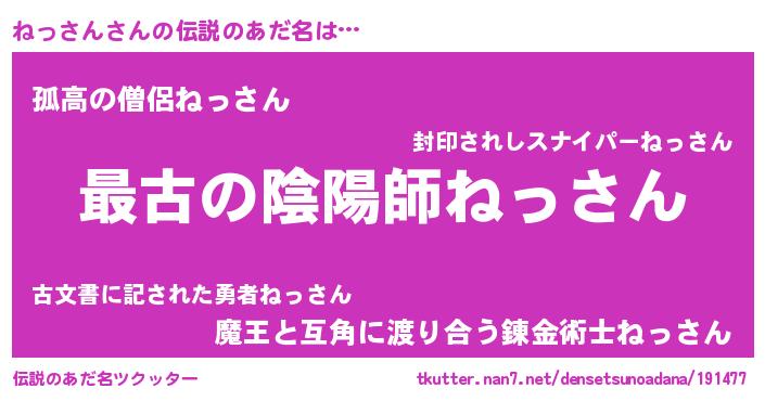 | ヒーロー風カッコイイあだ名 | 『ウルトラねっさんマン』『魔戒騎士ネッ』 |