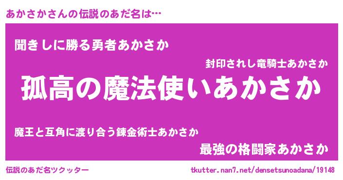 | 胡散臭い通販商品みたいなあだ名 | 『信頼と実績のサプリメント…その名も「あかさか」』 |
