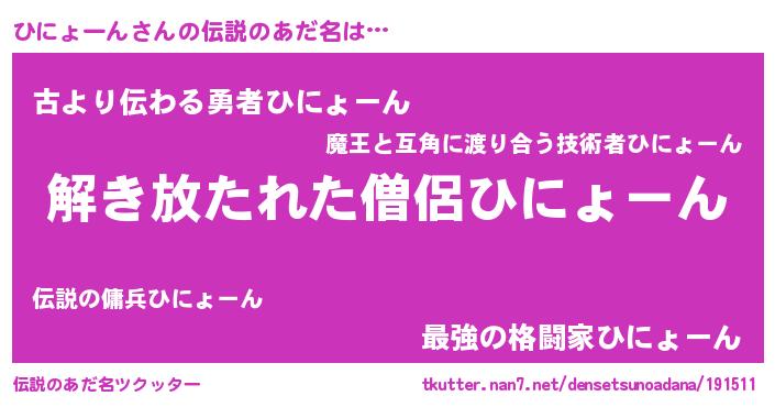| ポケモン風あだ名 | 『ヒヒニョーン』『ヒーニイ』 |