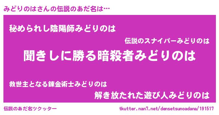 | 意味不明あだ名 | 『永久保存みどりのは』『自称みどりのは』 |