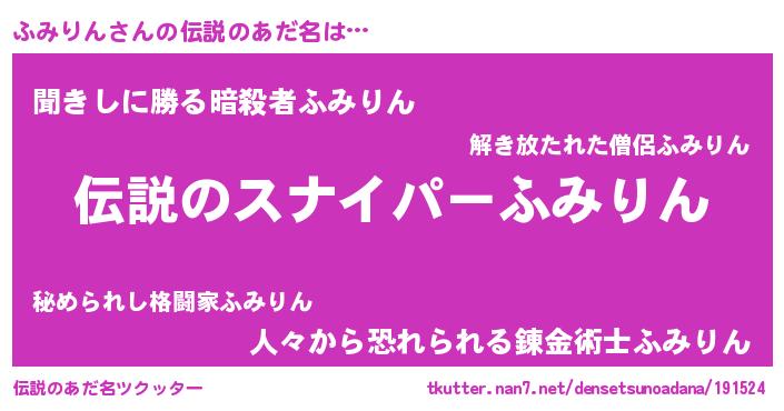 | 女子向けラノベタイトル風あだ名 | 『ふみりんアンティーク』 |