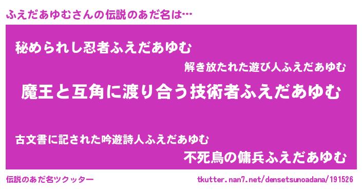 | 意味不明あだ名 | 『住所不定無職ふえだあゆむ(9歳)』 |