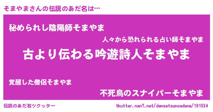 | 意味不明あだ名 | 『永久保存そまやま』『自称そまやま』 |