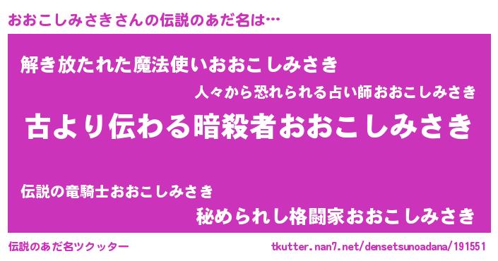 | 胡散臭い通販商品みたいなあだ名 | 『来世でも幸せになれる健康食品…その名も「おおこしみさき」』 |