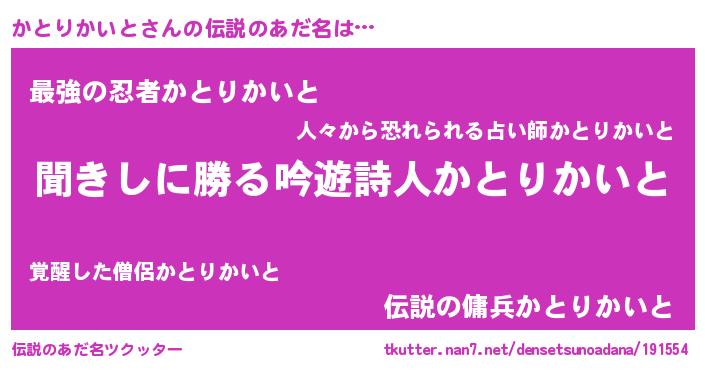 | 欧米人風あだ名 | 『ダルビッシュかとりかいと』 |