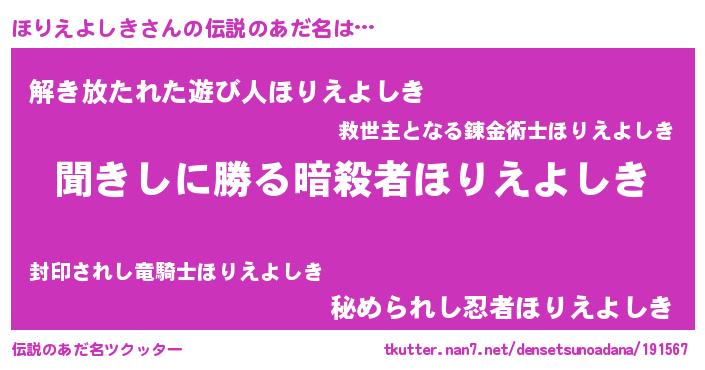 | 意味不明あだ名 | 『永久保存ほりえよしき』 |