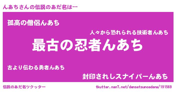 | 意味不明あだ名 | 『たけのこ科んあち属』『自称んあち』 |