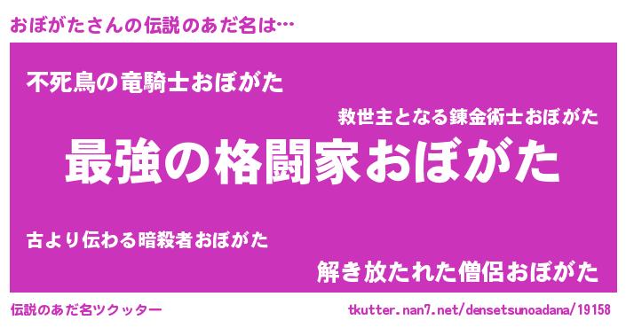 | 男性向けラノベタイトル風あだ名 | 『Re:おぼがたから始める異世界生活』 |