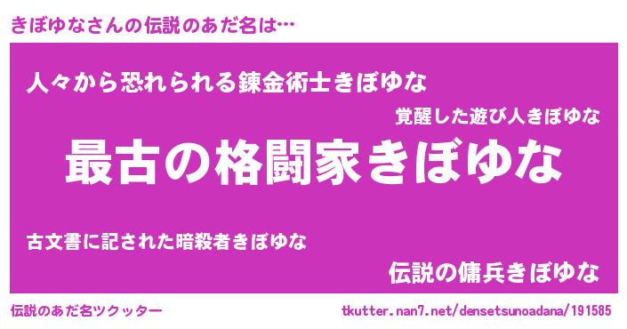 | 男性向けラノベタイトル風あだ名 | 『Re:きぼゆなから始める異世界生活』 |