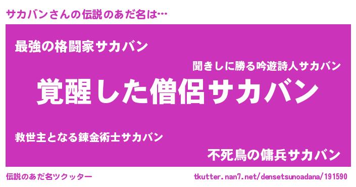 | 女子向けラノベタイトル風あだ名 | 『サカバン様がみてる』『闇のサカバン』 |