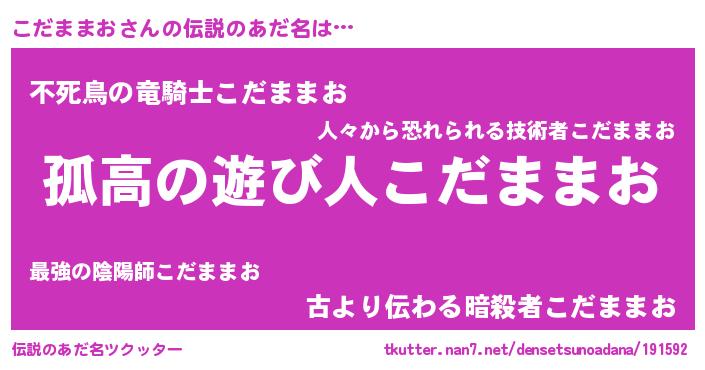 | 女子向けラノベタイトル風あだ名 | 『こだままおは平凡を望む』 |