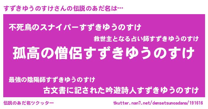| 男性向けラノベタイトル風あだ名 | 『スズキユウノスケスレイヤー』 |