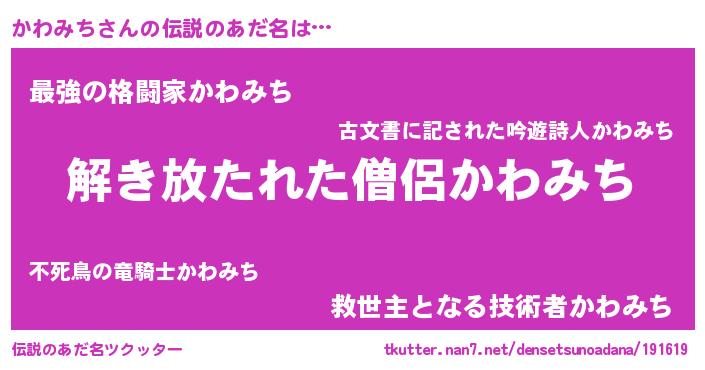 | 意味不明あだ名 | 『住所不定無職かわみち(65歳)』 |