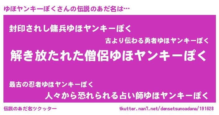 | ヒーロー風カッコイイあだ名 | 『仮面ユホダー』『銀牙騎士ユホ』 |