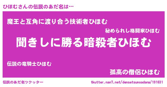 | ヒーロー風カッコイイあだ名 | 『仮面ヒホダー』『ネオヒホム』 |