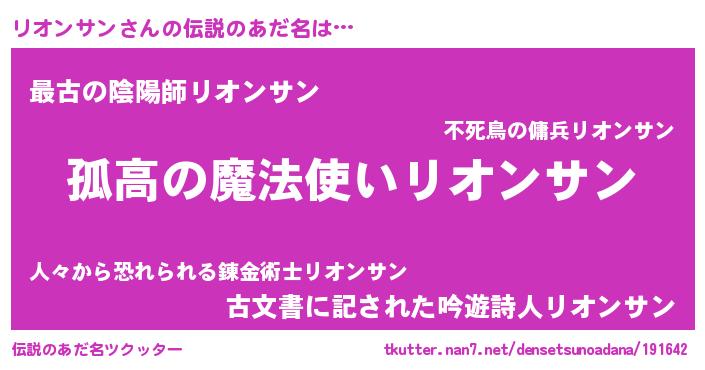 | 意味不明あだ名 | 『とにかく怪しいリオンサン』 |
