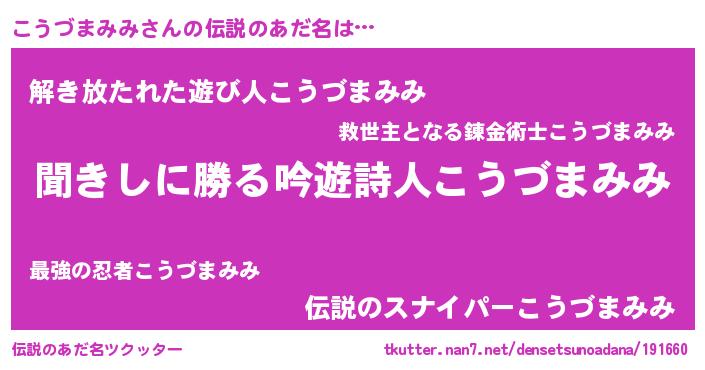 | 意味不明あだ名 | 『住所不定無職こうづまみみ(3歳)』 |