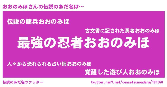 | 意味不明あだ名 | 『おおのみほフォーエバー』 |