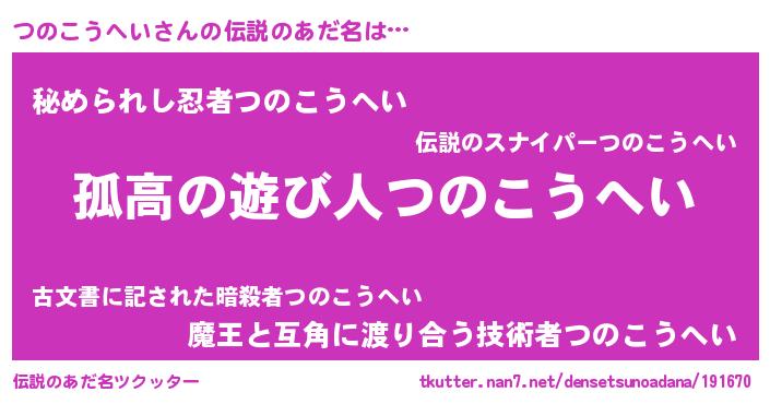 | ヒーロー風カッコイイあだ名 | 『超時空戦士ツノコウヘイ』 |