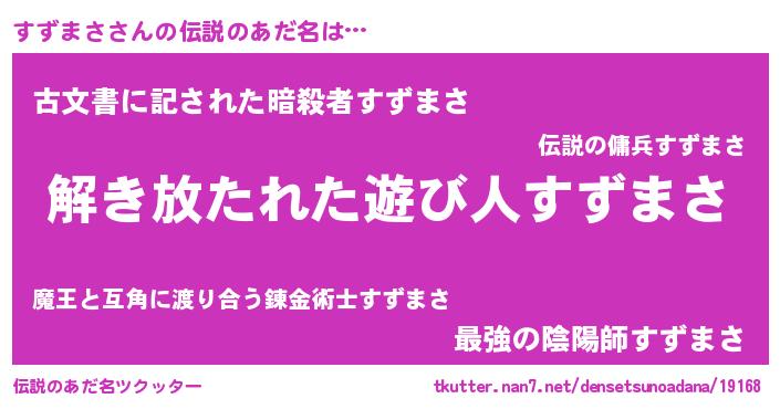 | ヒーロー風カッコイイあだ名 | 『仮面スズダー』『炎刃騎士スズ』 |