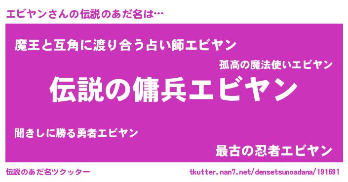 | ヒーロー風カッコイイあだ名 | 『スーパーエビヤン』『愛の使者エビヤン』 |