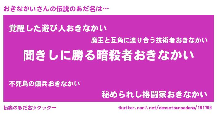 | 意味不明あだ名 | 『自称おきなかい』『永久保存おきなかい』 |
