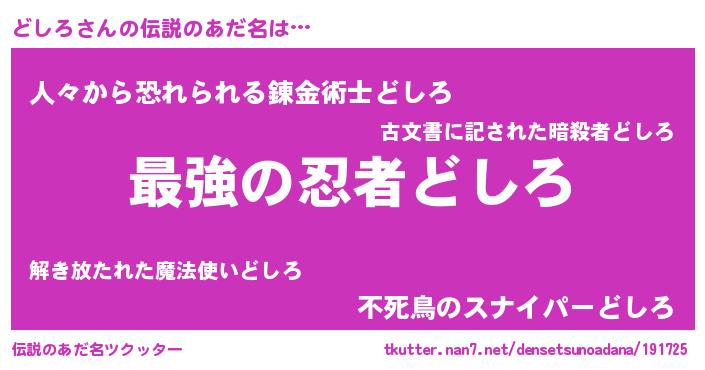 | ヒーロー風カッコイイあだ名 | 『ウルトラどしろマン』『スーパードシロ』 |