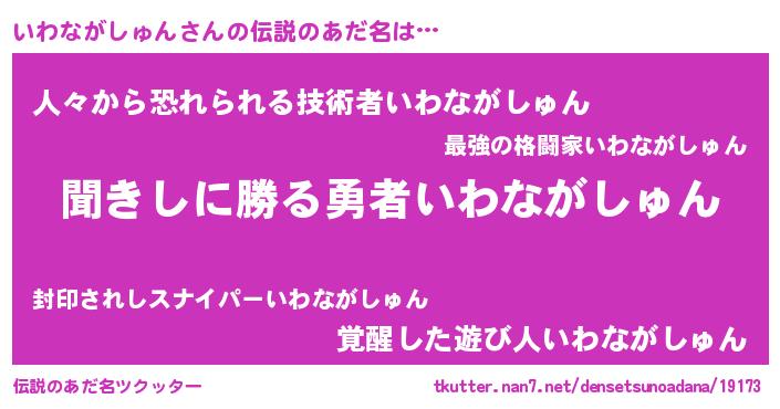 | 意味不明あだ名 | 『永久保存いわながしゅん』 |