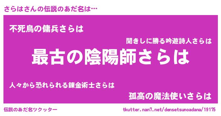 | 意味不明あだ名 | 『住所不定無職さらは(74歳)』『自称さらは』 |