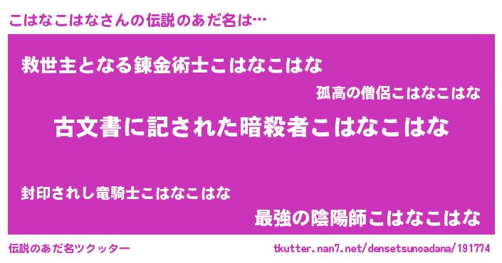 | 男性向けラノベタイトル風あだ名 | 『こはなこはなに滅ぼされるだけの簡単なお仕事です』 |