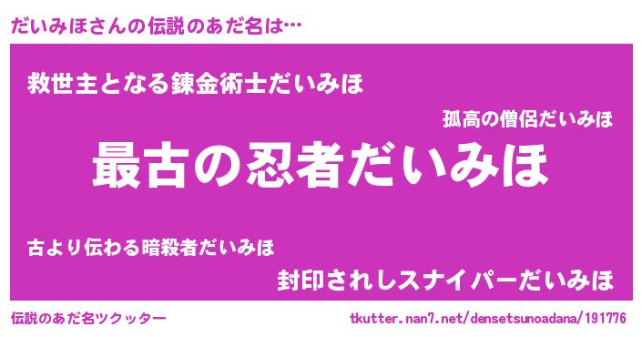 | ヒーロー風カッコイイあだ名 | 『ウルトラだいみほマン』『銀牙騎士ダイ』 |