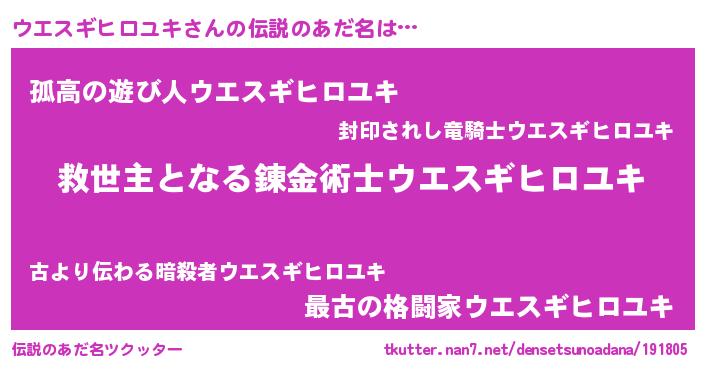 | ポケモン風あだ名 | 『ウックウザ』『ヒウエスギヒロユキ』 |