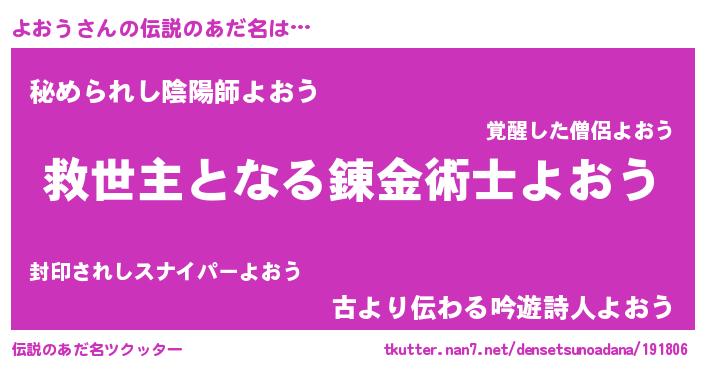 | ヒーロー風カッコイイあだ名 | 『仮面ヨオダー』『慈愛の使者よおう』 |