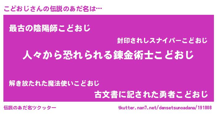 | ヒーロー風カッコイイあだ名 | 『正義の使者こどおじ』『ネオコドオジ』 |