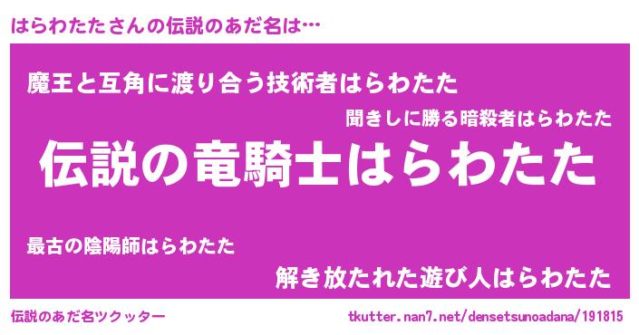 | 胡散臭い通販商品みたいなあだ名 | 『必ず成功するブレスレット…その名も「はらわたた」』 |