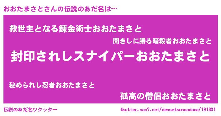 | 意味不明あだ名 | 『自称おおたまさと』 |