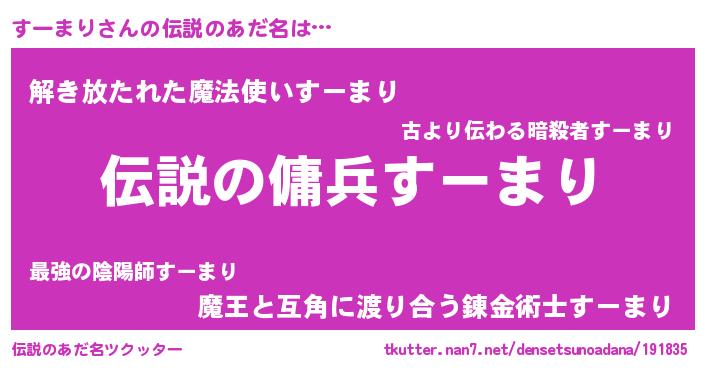 | 男性向けラノベタイトル風あだ名 | 『魔法科高校のすーまり』 |