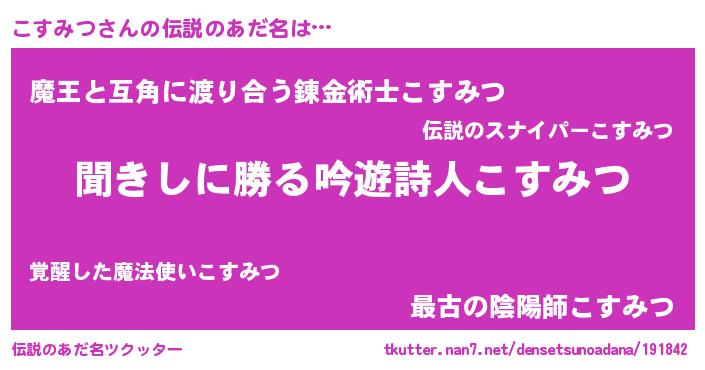 | 意味不明あだ名 | 『永久保存こすみつ』 |
