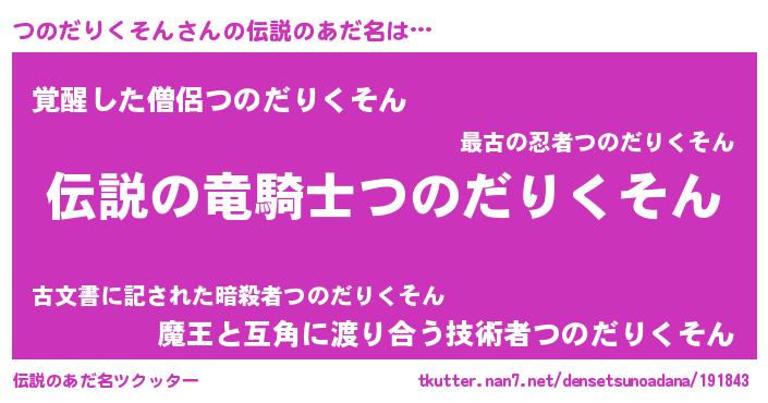 | 男性向けラノベタイトル風あだ名 | 『つのだりくそんの憂鬱』 |