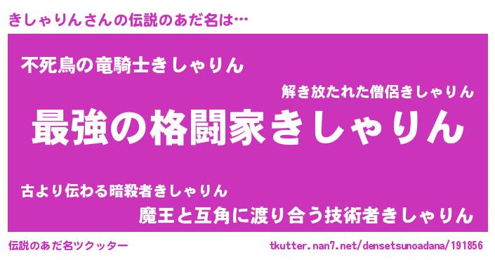 | 意味不明あだ名 | 『きしゃりんフォーエバー』 |