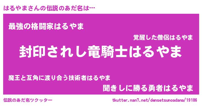 | ファンタジー風あだ名 | 『ハルフェル』『エターナルハルヤマー』 |