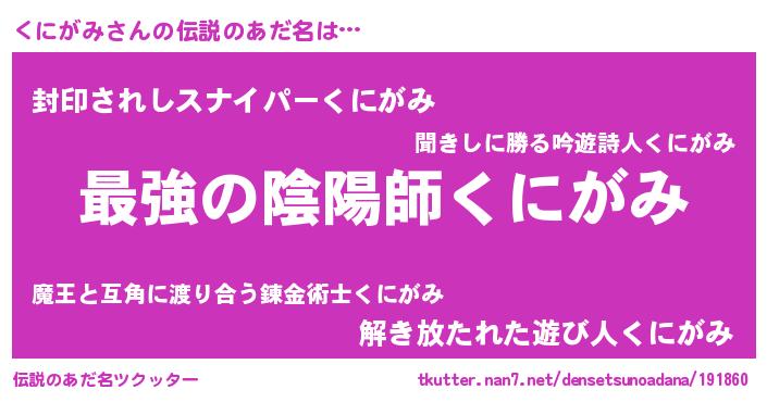 | ヒーロー風カッコイイあだ名 | 『仮面クニダー』『ウルトラくにがみマン』 |