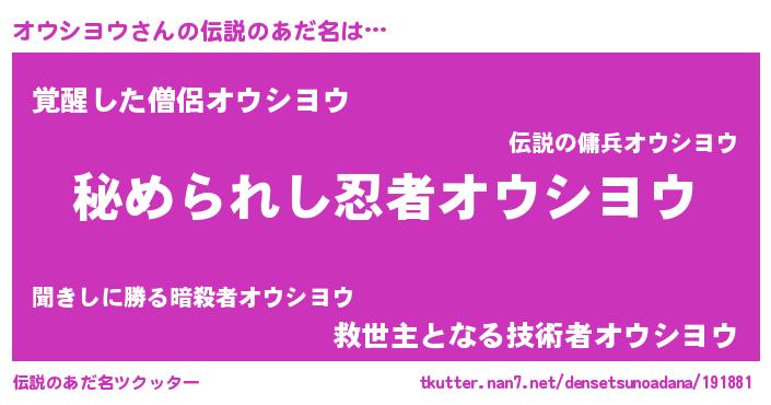 | ヒーロー風カッコイイあだ名 | 『ウルトラ戦士オウシヨウ』 |